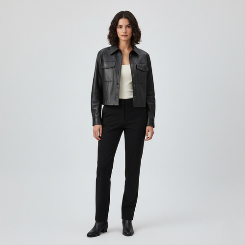 Cropped Leather Utility Shirt Jacket
