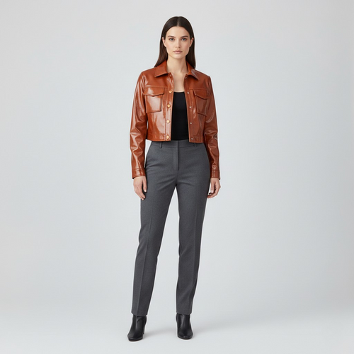 Cropped Leather Utility Jacket